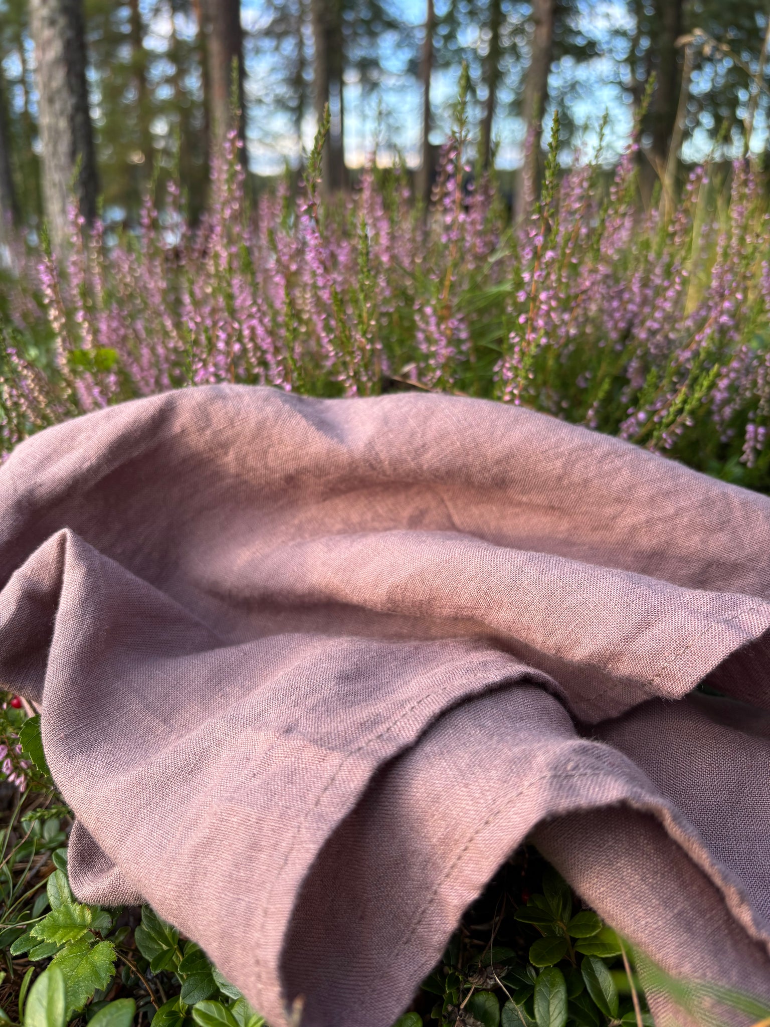 Ihana, kanervan sävyinen keittiöpyyhe, joka on 100% pellavaa. Koko on reilu, noin 50x70 cm. Ei kutistu pesussa, sillä pellava on kivipestyä, pehmennettyä pellavaa.